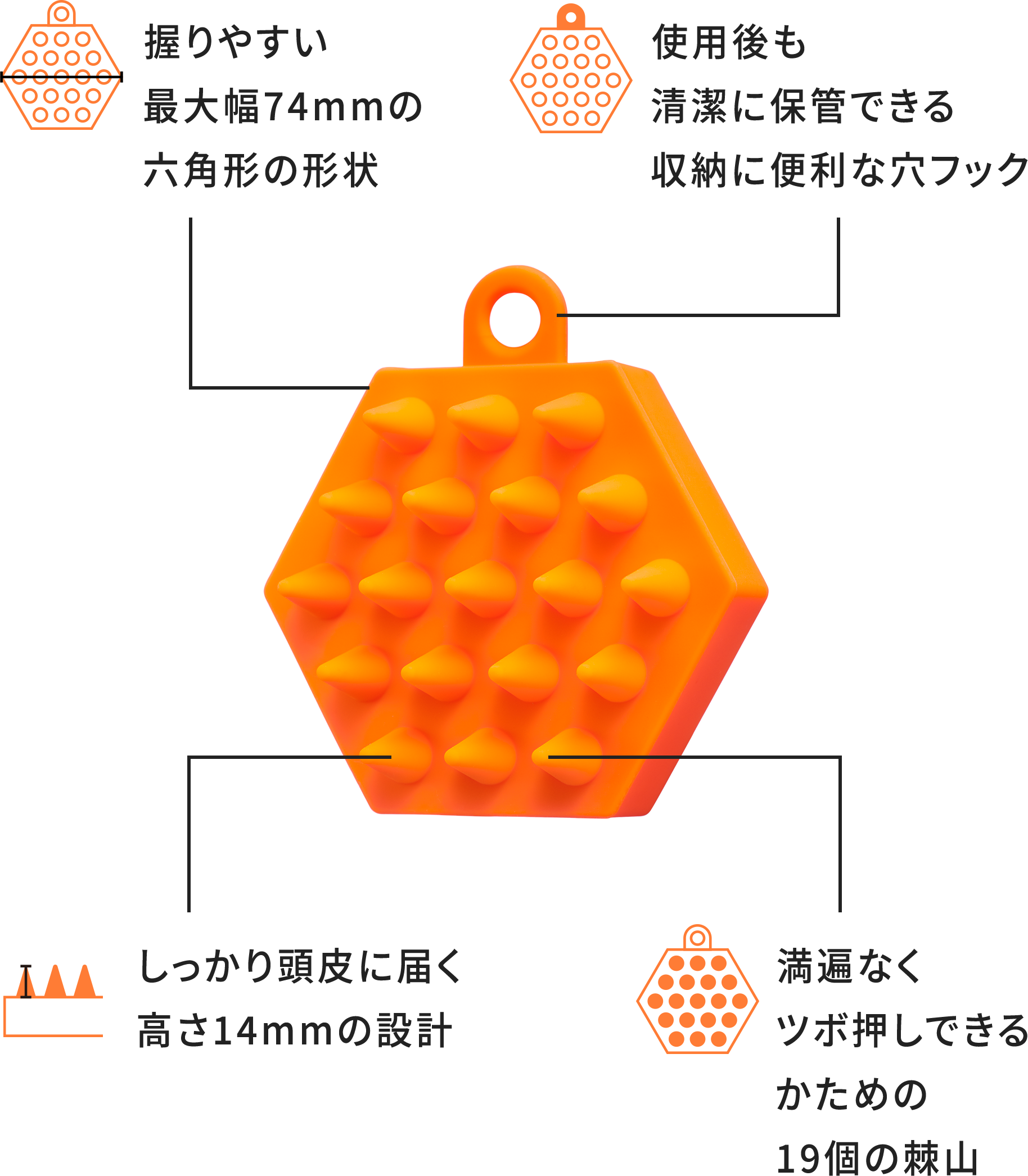 頭皮にブラシを固定し、垂直に力がかかるようにブラシを押し当てます。ツボを刺激するために軽くタッピングするのもおすすめです。